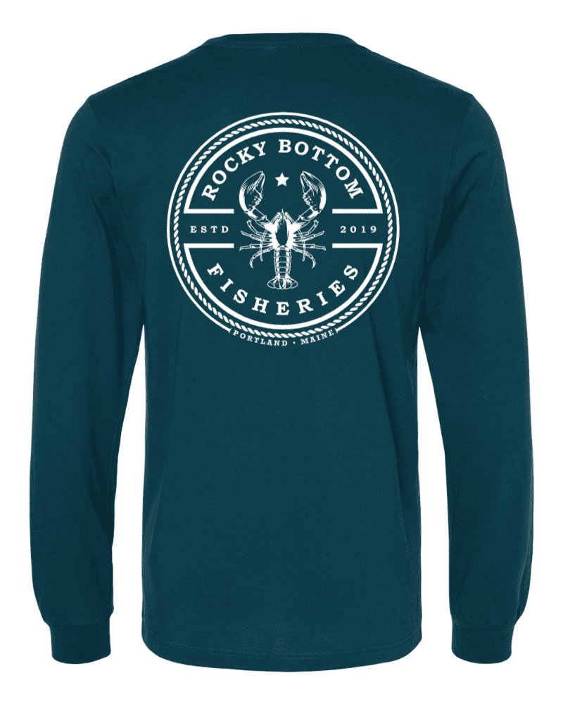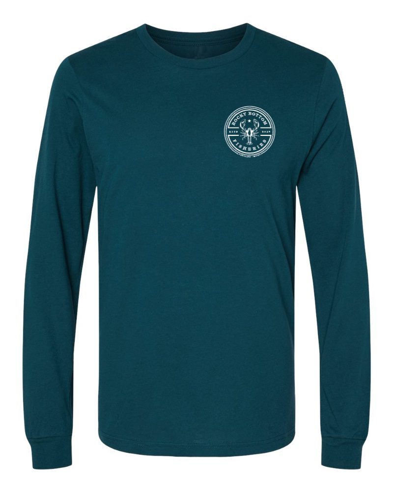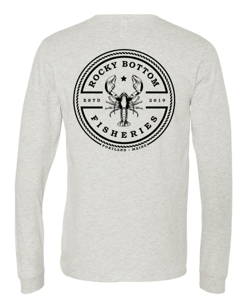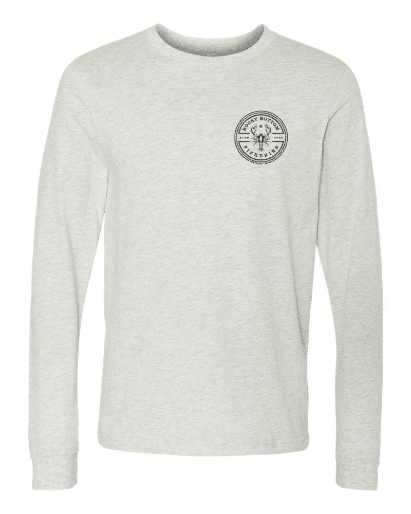 Super comfortable, lightweight, long-sleeved shirt with Rocky Bottom Fisheries classic logo on the front left chest and back of shirt.